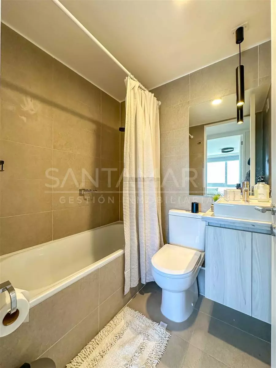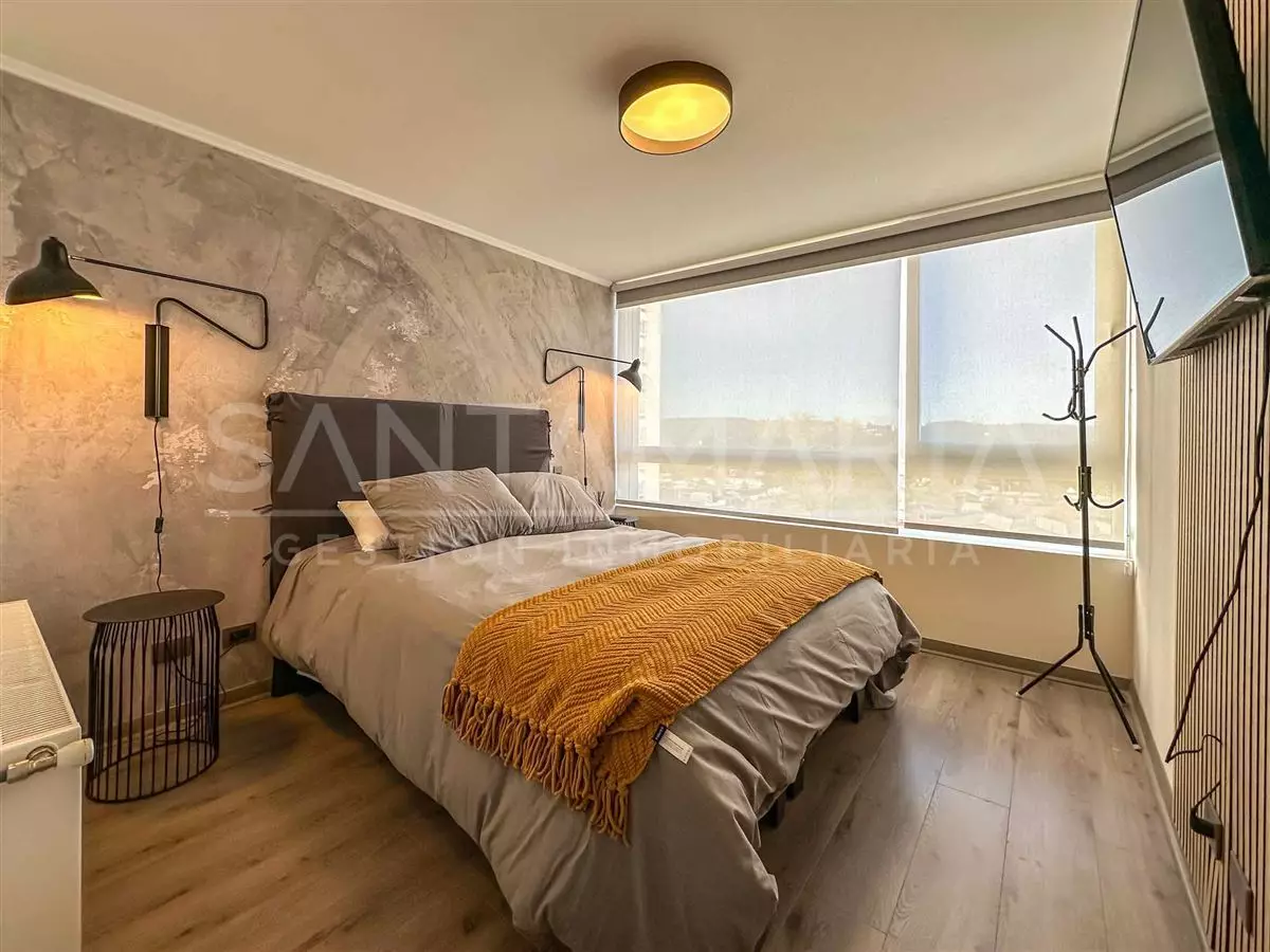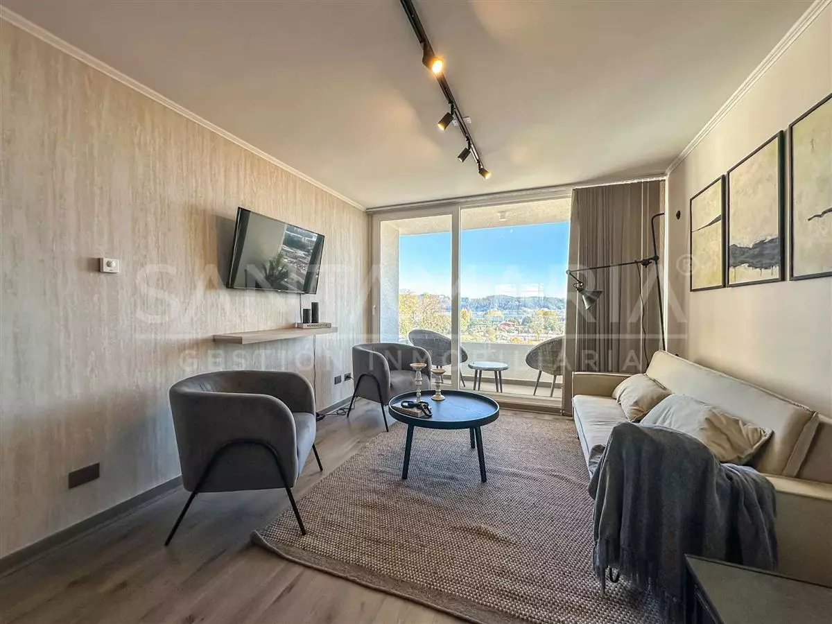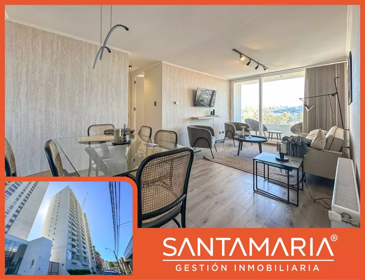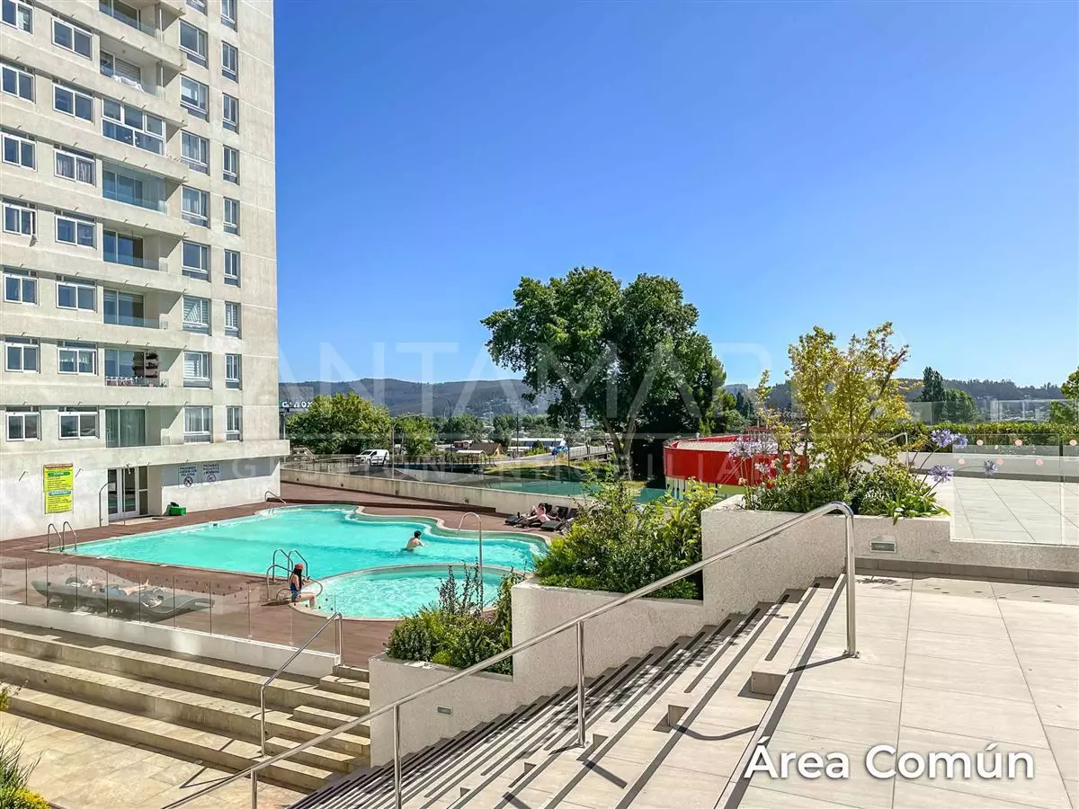 Calefacción central en living, cocina americana equipada, cuenta con conexión a lavadora, excelente ubicación a pocas cuadras de pleno centro de Concepción, a pasos del parque ecuador, locomoción colectiva a una cuadra, hermosa vista hacia Río Bío-Bío, conserjería 24/7, etc.