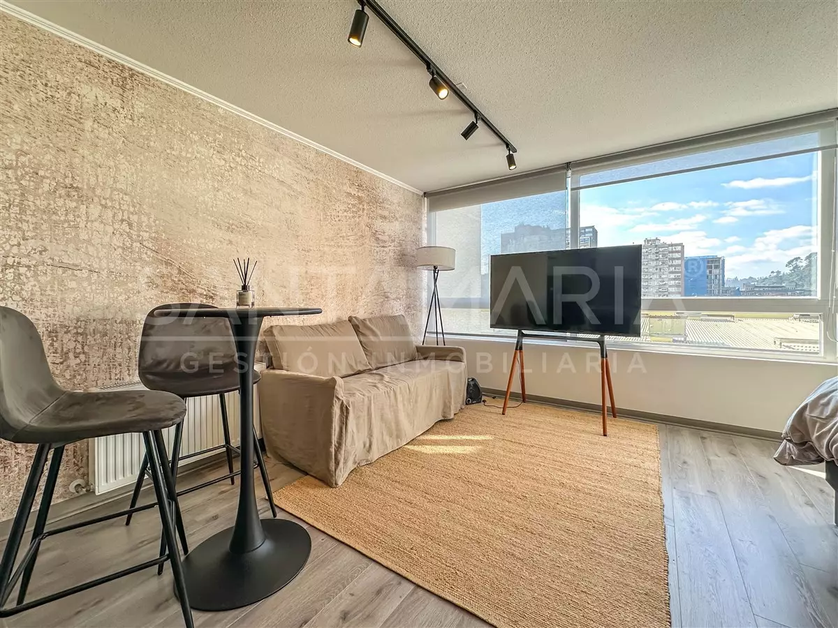 Calefacción central, cocina americana equipada, orientación oriente, por lo que recibe sol durante las mañanas, excelente ubicación a pocas cuadras de pleno centro de Concepción, a pasos del parque ecuador, locomoción colectiva a una cuadra, conserjería 24/7, etc.