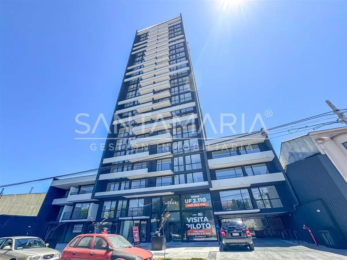 Departamento en arriendo en Las Heras, Concepción, ideal para quienes buscan vivir en un espacio moderno y bien ubicado. Cuenta con 1 dormitorio y 1 baño, estacionamiento, lámparas y cortinas roller instaladas, además de calefacción por caldera. Se ubica en un edificio nuevo con completos espacios comunes como gimnasio, salón de eventos, lavandería, salas de estudio y acceso controlado, ofreciendo comodidad, seguridad y excelente conectividad en pleno centro de la ciudad.