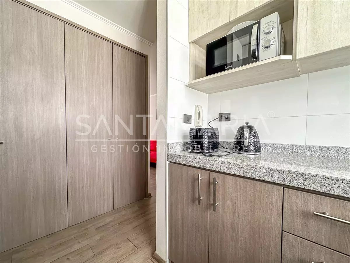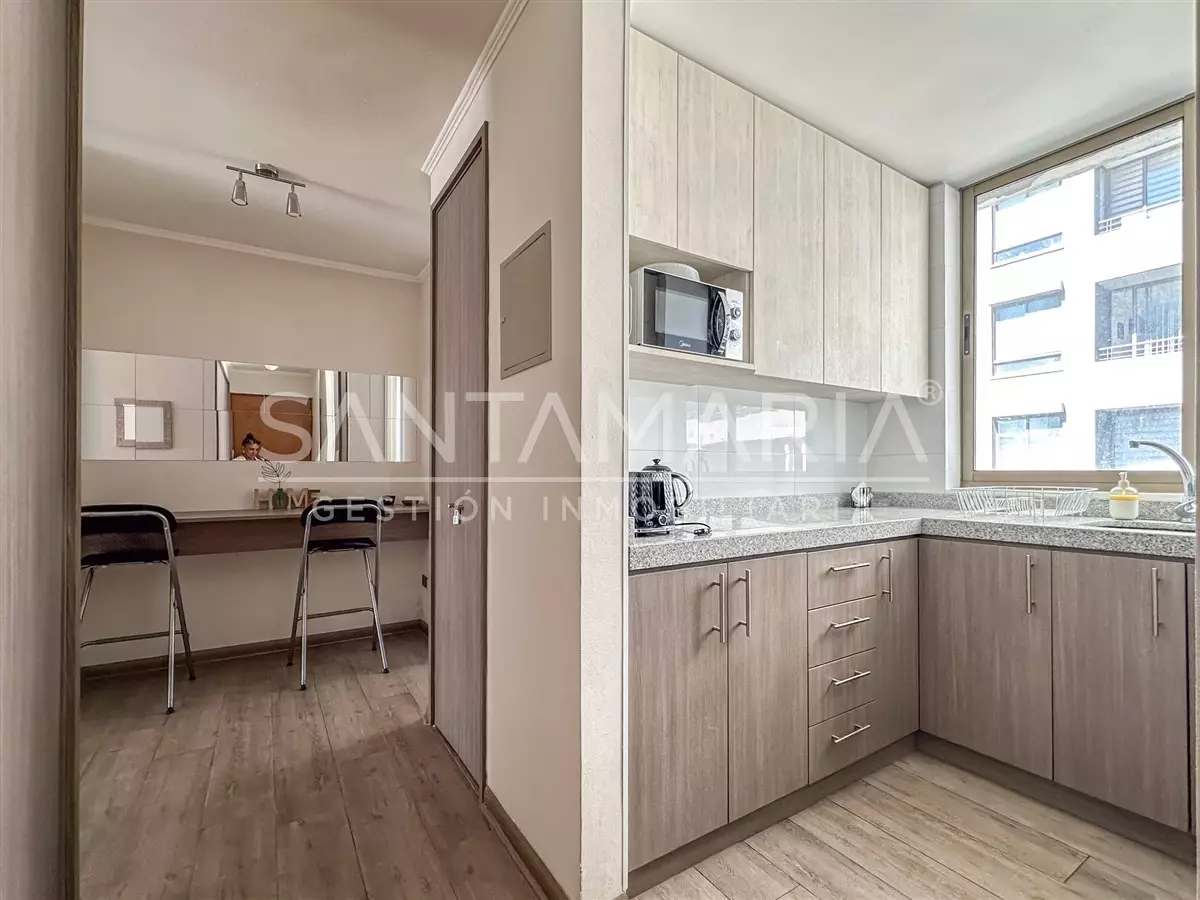 ¡Acogedor departamento amoblado en el centro de Concepción! Este hermoso departamento de 39m2 cuenta con 1 dormitorio bastante luminoso ideal para recibir a amigos y familiares, cuenta con conexión a lavadora, además, la propiedad recibe sol en las tardes, lo que le brinda calidez y luz al departamento.