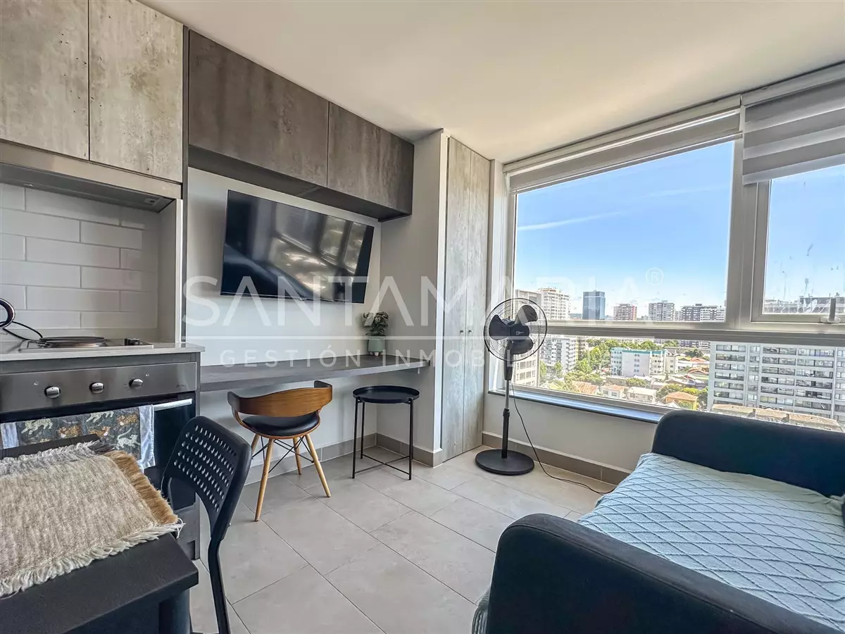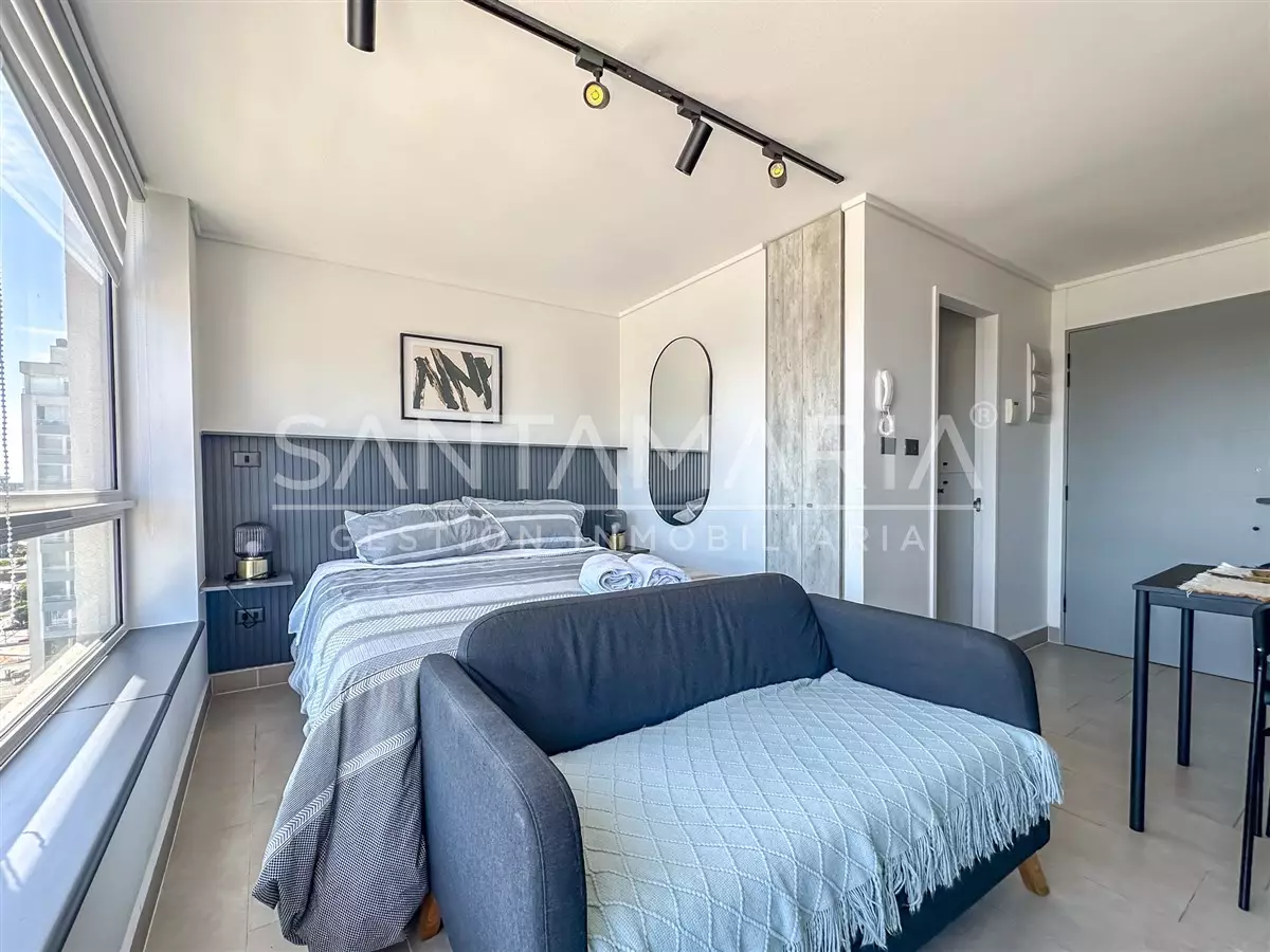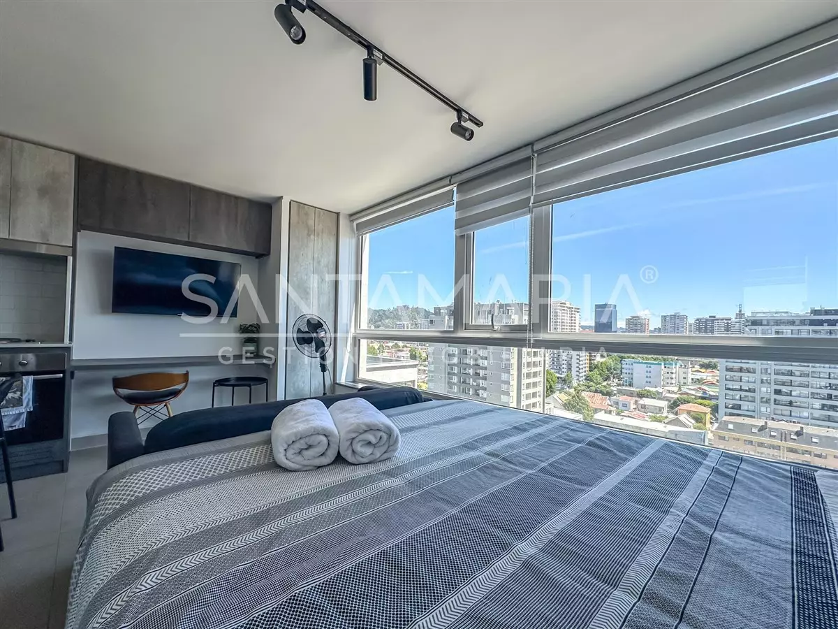 Cómodo departamento de 1 ambiente y 1 baño es perfecto si buscas vivir a pasos del centro de la ciudad de Concepción. El departamento cuenta con una cocina , ventanas termopanel, diseño moderno, conexión a lavadora en baño, orientación poniente por lo que recibe sol durante las tardes, etc.
