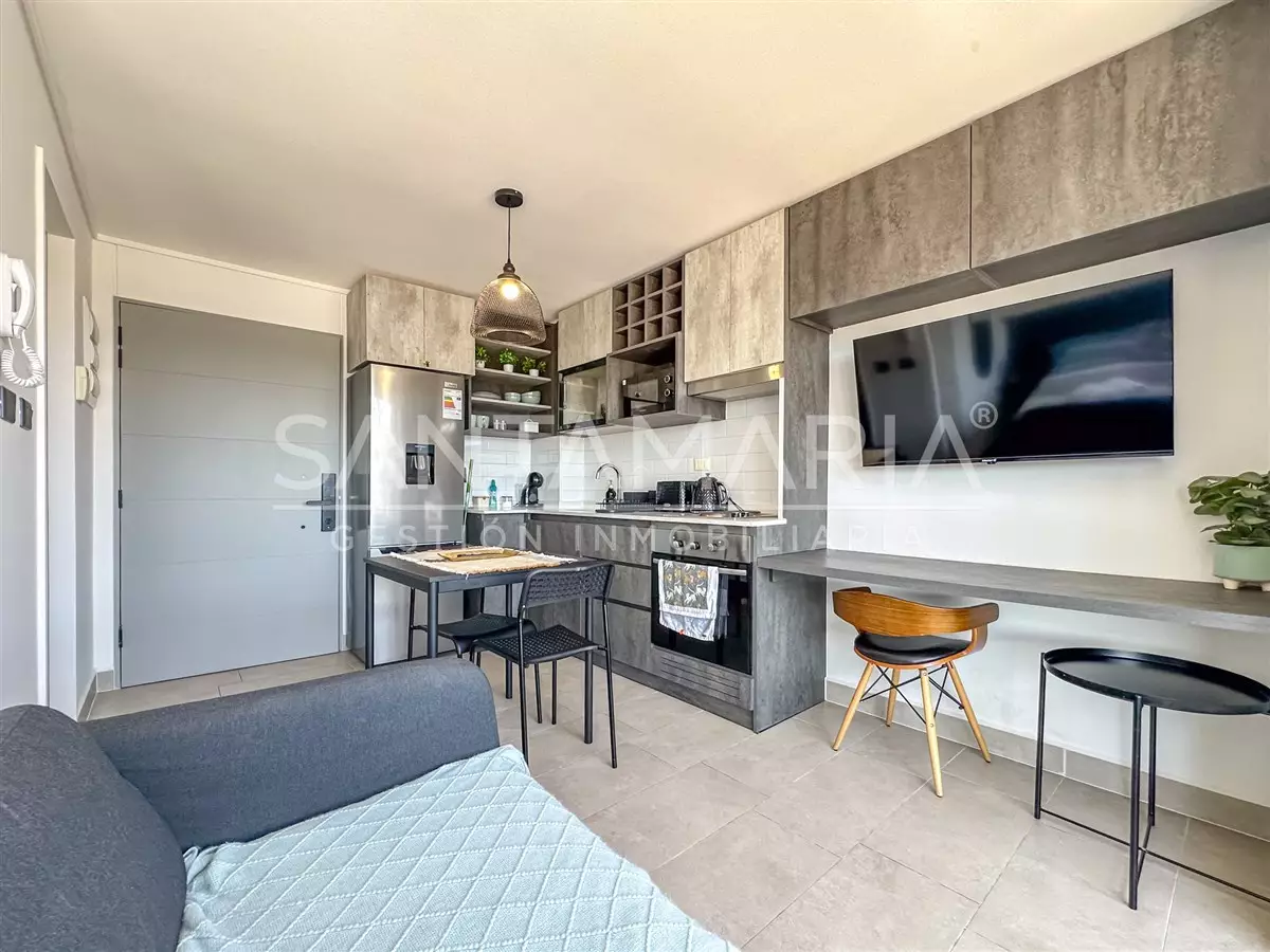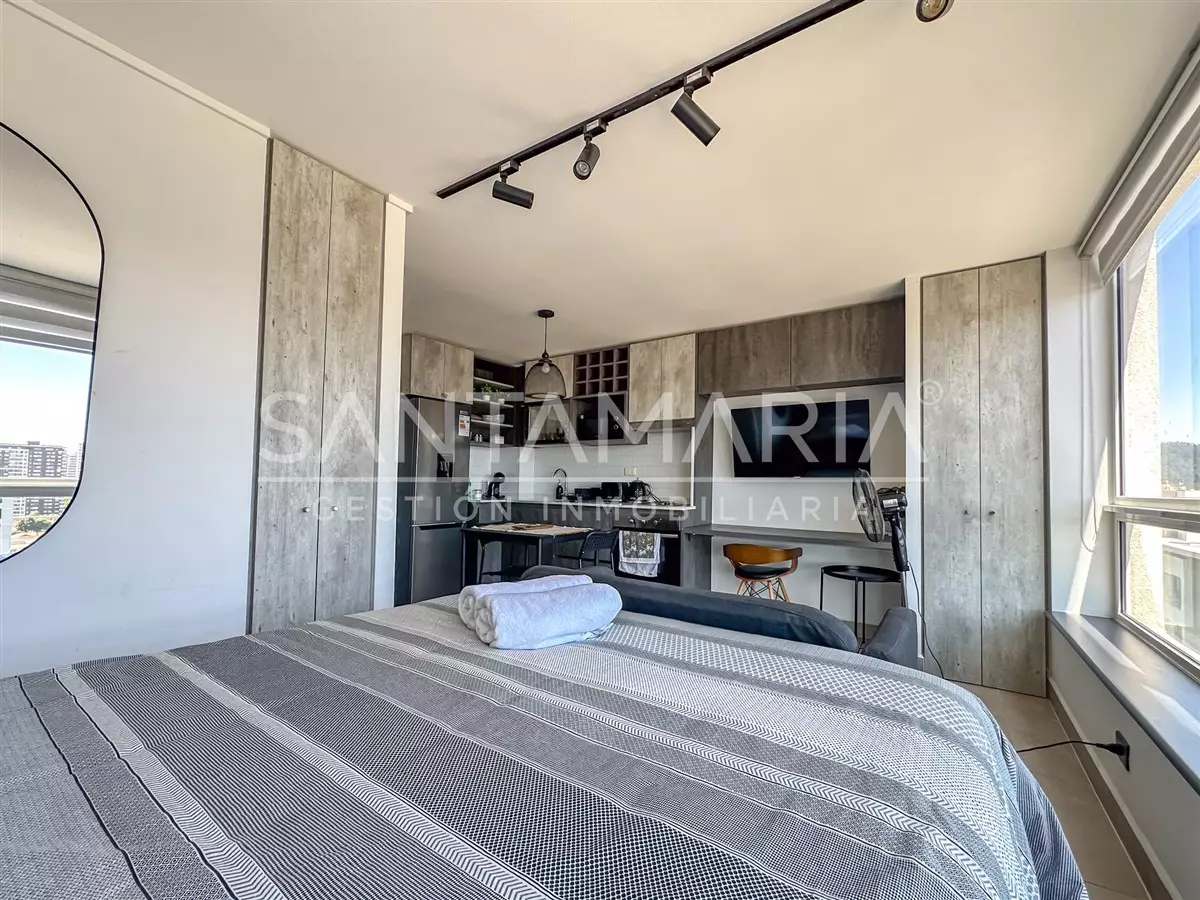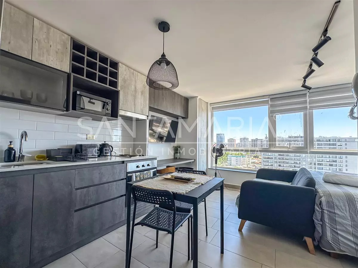 Cómodo departamento de 1 ambiente y 1 baño es perfecto si buscas vivir a pasos del centro de la ciudad de Concepción. El departamento cuenta con una cocina , ventanas termopanel, diseño moderno, conexión a lavadora en baño, orientación poniente por lo que recibe sol durante las tardes, etc.