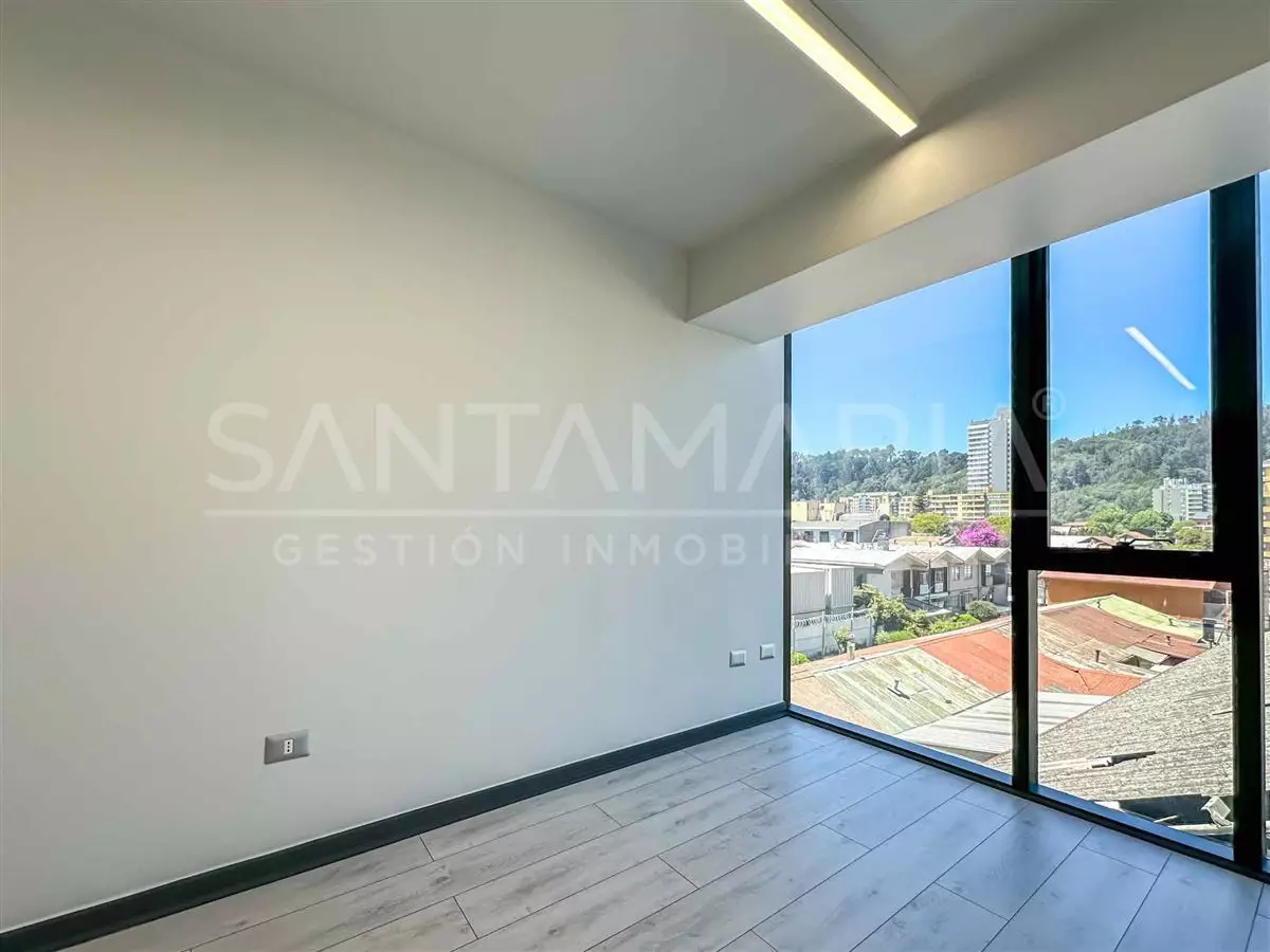 Moderna y cómoda oficina en pleno centro de Concepción, recibe un poco de sol en las mañanas. Excelente ubicación a pasos de Parque Ecuador, cercano a Plaza de armas, comercios, etc. El edificio cuenta con hall de acceso, excelente seguridad, zona con sala de reuniones, cowork y café en primer piso del edificio.