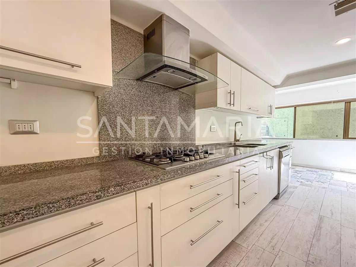 Superficies: Total 260 m²; Útil 210 m²; 3 Dormitorios, 4 Baños, 2 Estacionamientos, 1 Bodega, Terrazas y patio de uso exclusivo.