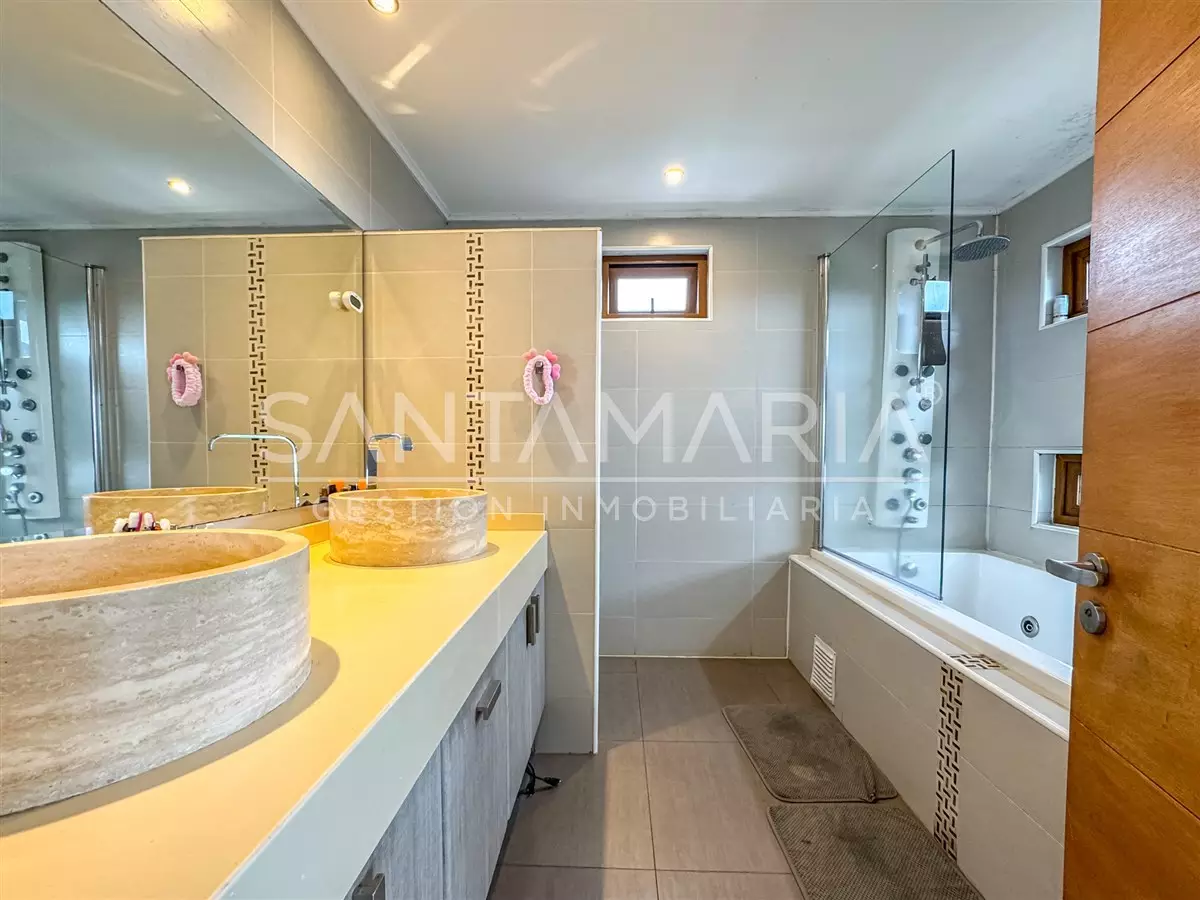 Casa en arriendo en Camino el Venado, San Pedro de la Paz, con 320 m² construidos y un terreno de 615 m², distribuida en 7 dormitorios y 5,5 baños, con orientación nororiente, remodelada en 2023, equipada con termo eléctrico, calefacción central, cortinas, lámparas y opción de arriendo amoblado; cuenta con 2 estacionamientos y 1 bodega, ubicada en un condominio consolidado que ofrece excelentes areas comunes con accesos controlados. Ideal para familias que buscan comodidad, amplios espacios y un entorno residencial de alta calidad.