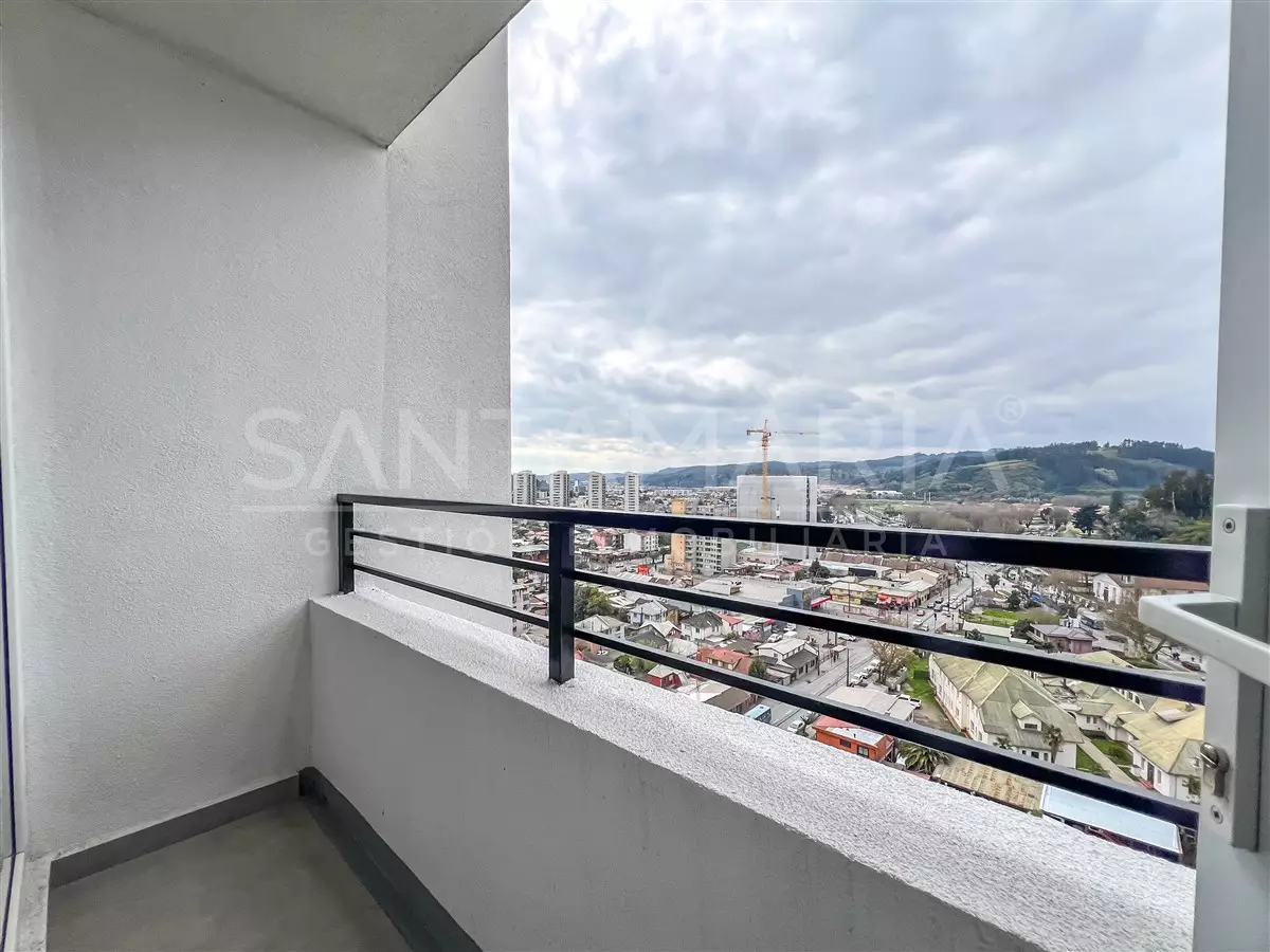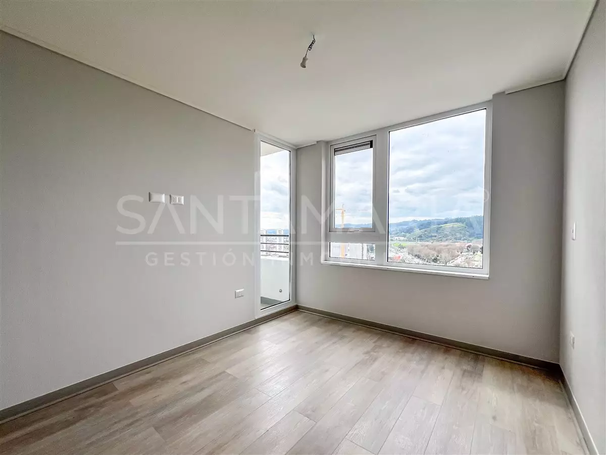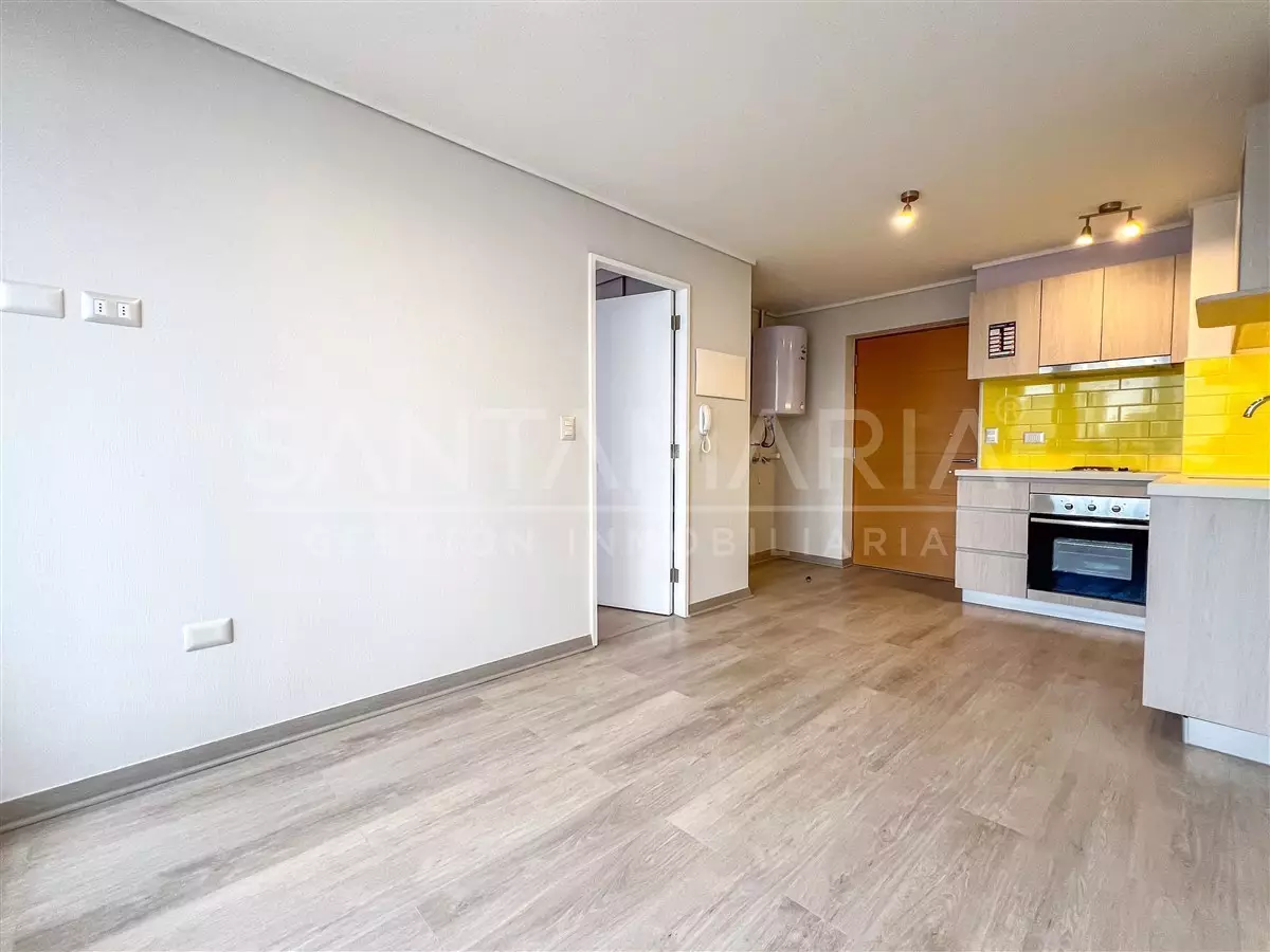 Se arrienda moderno departamento en Maipú, Concepción, construido en 2025 y con 36 m² distribuidos en 1 dormitorio y 1 baño. La propiedad cuenta con ventanas termopanel, sistema de calefacción mediante termo eléctrico y se entrega con cortinas y lámparas instaladas.