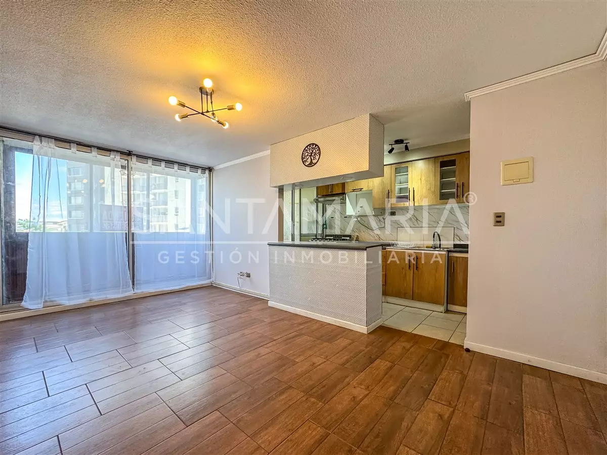Se arrienda departamento en Condominio Mirador de Hualpén, con orientación surponiente y 52 m² construidos. La propiedad cuenta con 2 dormitorios, 1 baño y estacionamiento. Cocina amoblada y equipada, incluye luminarias y cortinas. Edificio del año 2011 con áreas verdes y entorno residencial tranquilo.